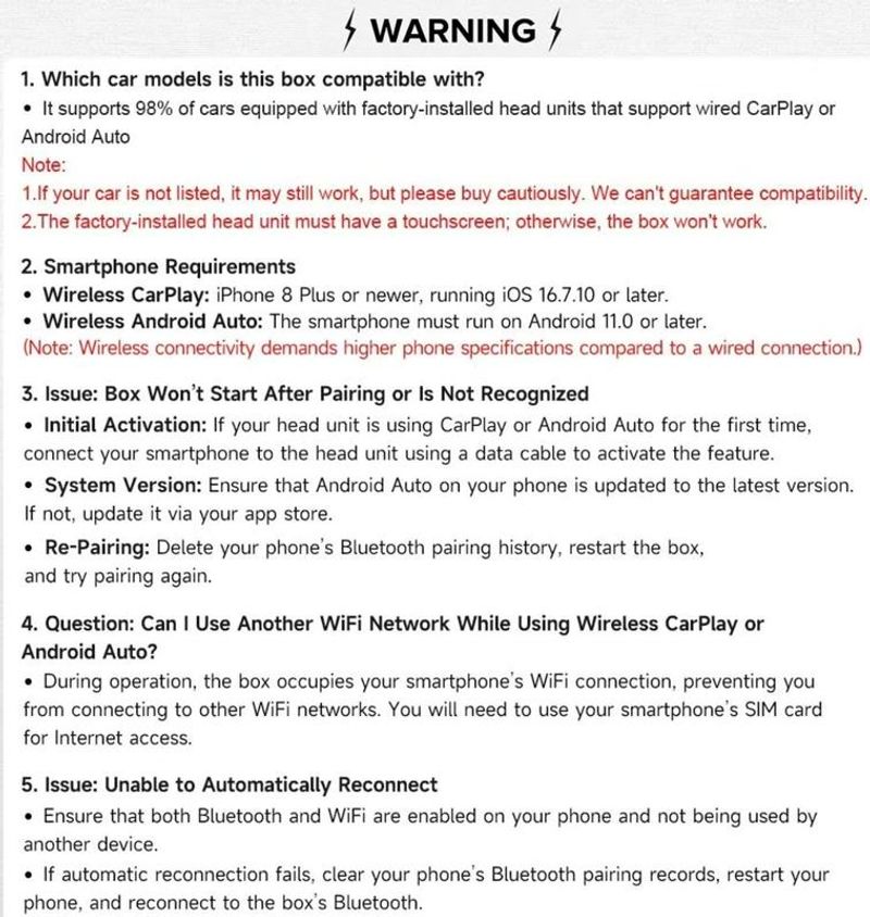 The main function of this product is to convert wired CarPlay or Android Auto into wireless.