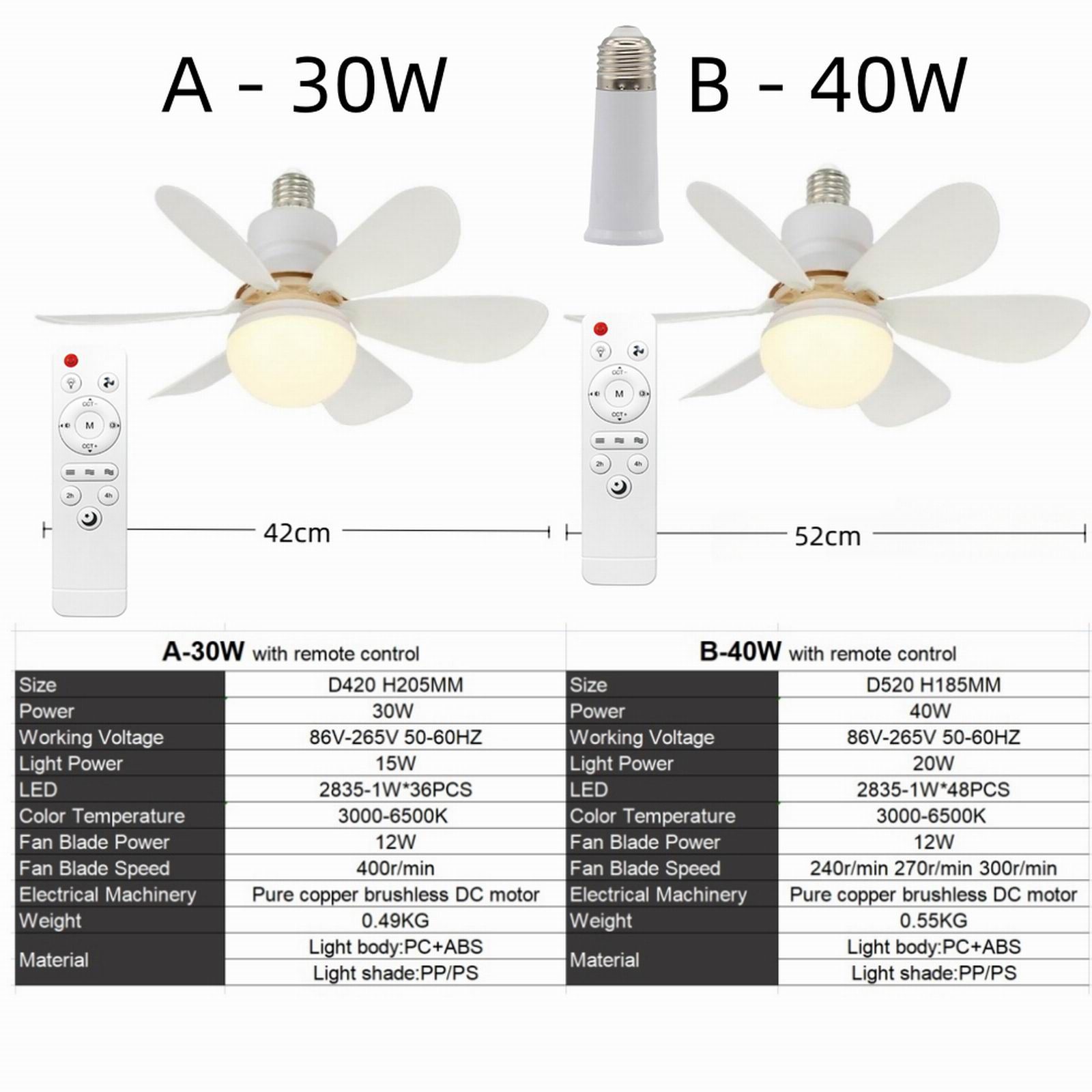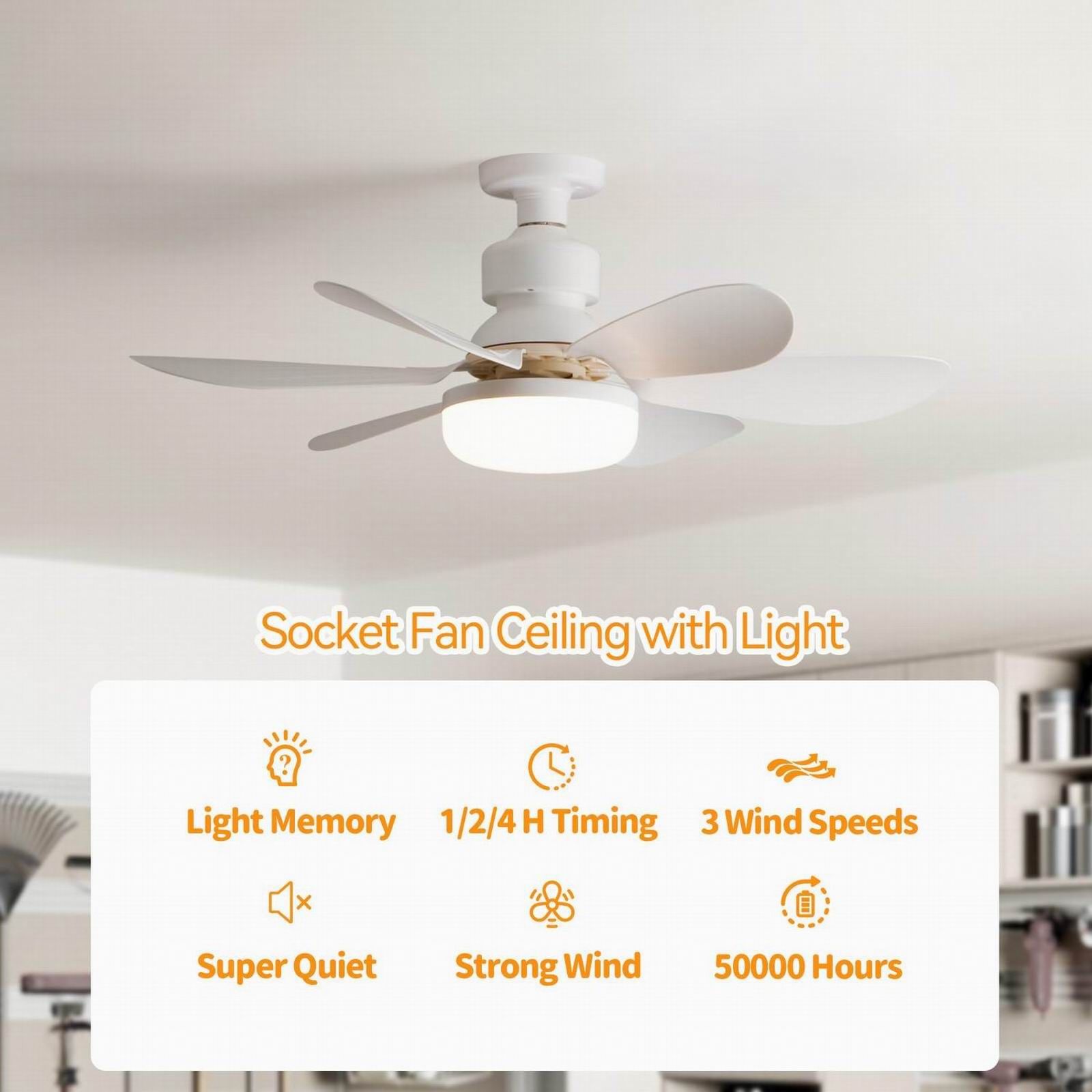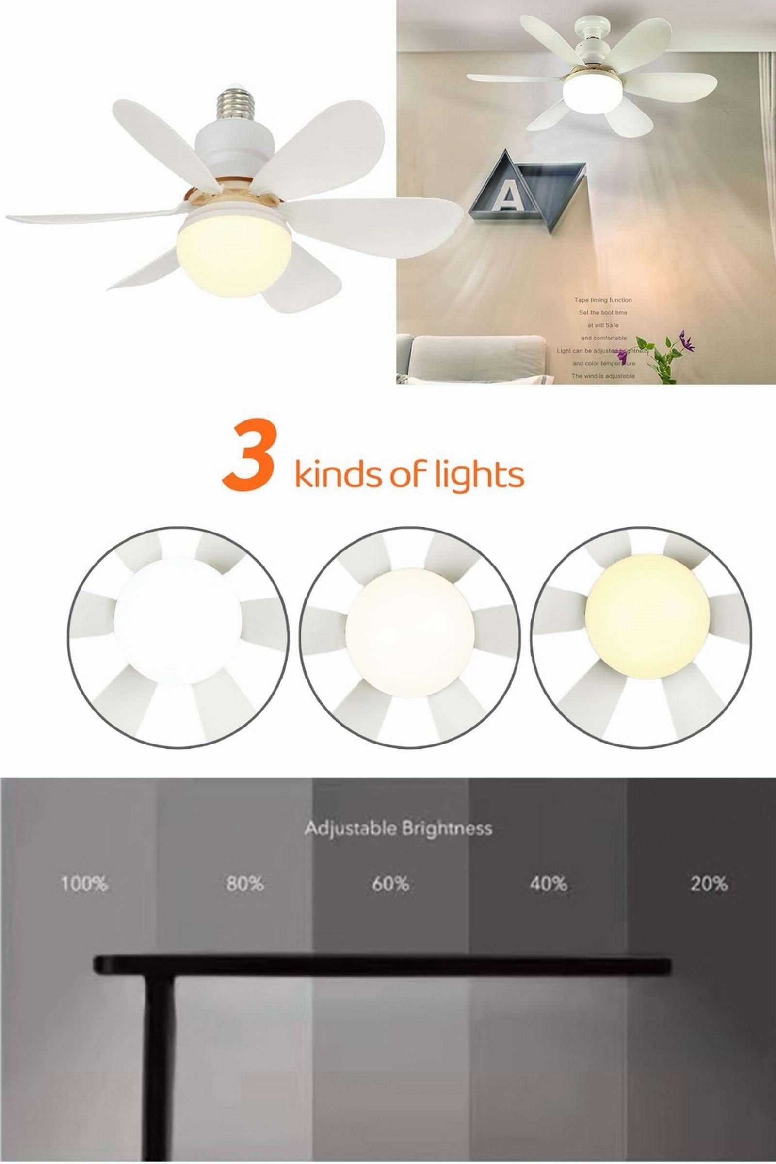 30W E27 Base Ceiling Fan Light, Dimmable CeilingFans Light with Remote Control& 3-Speed WindAdjustment,Energy-saving Ceiling Fan Light forHome Bedroom Kitchen